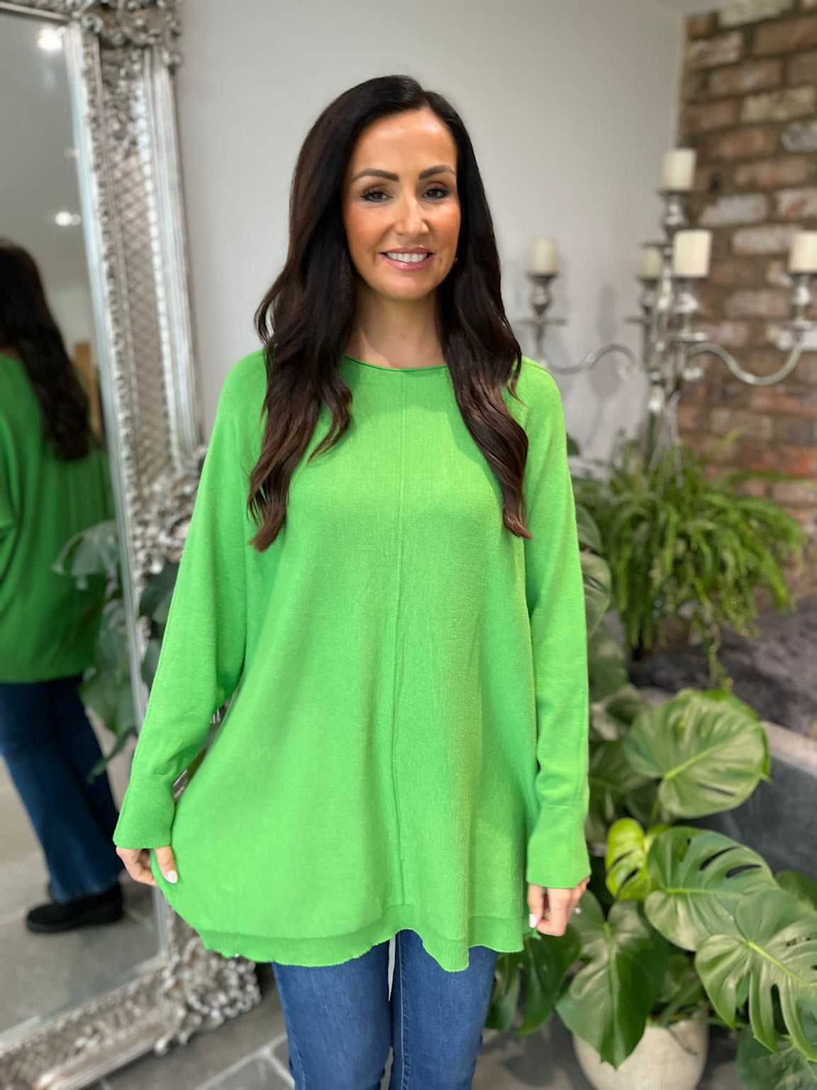 Knitted High Neck Long Sleeve Contrast Stitch Mini Dress Green Public Desire